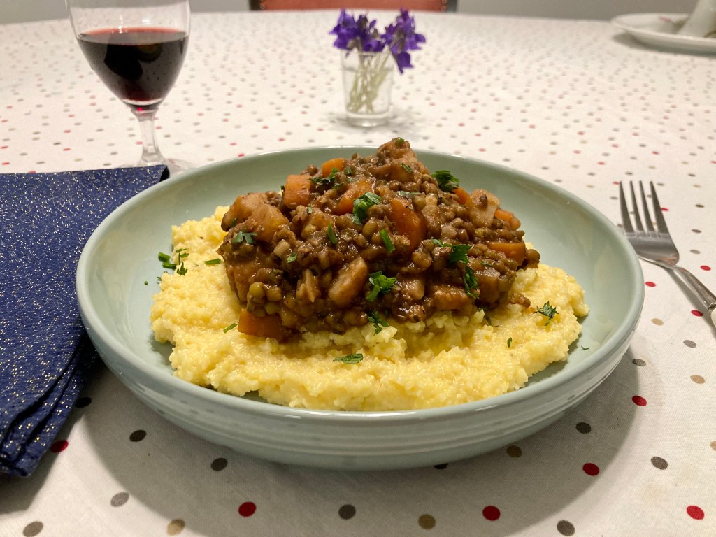 Így készült ez a recept is, és szerintem igen kiváló lett, bár tény, hogy az eredetire valószínűleg a saját anyja se ismerne rá 🙂 Kihagytam belőle a vadhúst, cserébe tettem bele még plusz zöldségeket, és a fűszerezésen is változtattam…