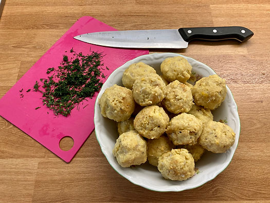Mikor kézmelegre hűlt, nedves kézzel gombócokat formálok belőle, s meg is vagyunk.